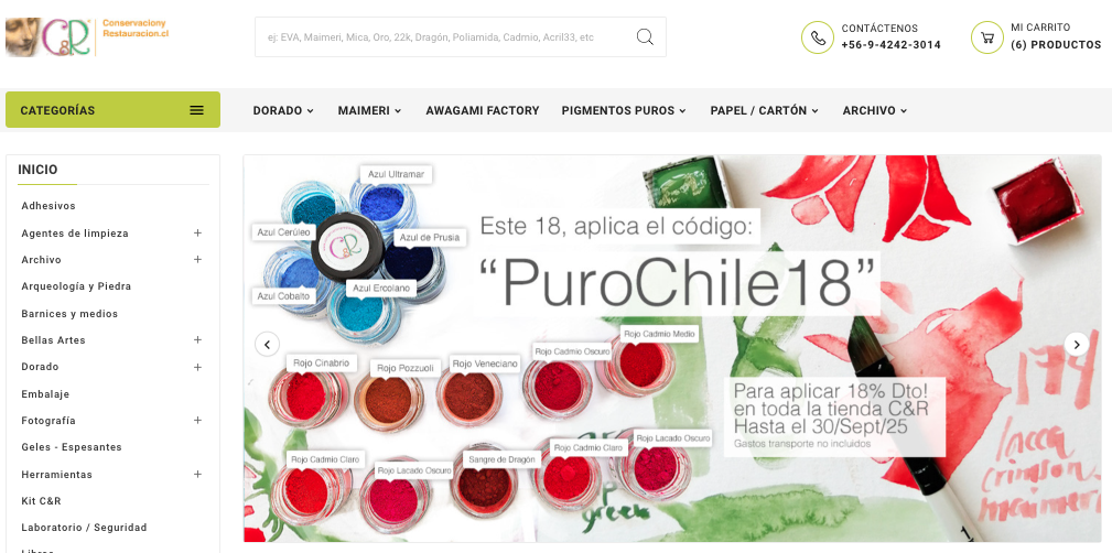Ya está activo el cupón de 18% OFF en toda la tienda ConservacionyRestauracion.cl hasta el 30 Sept 2025